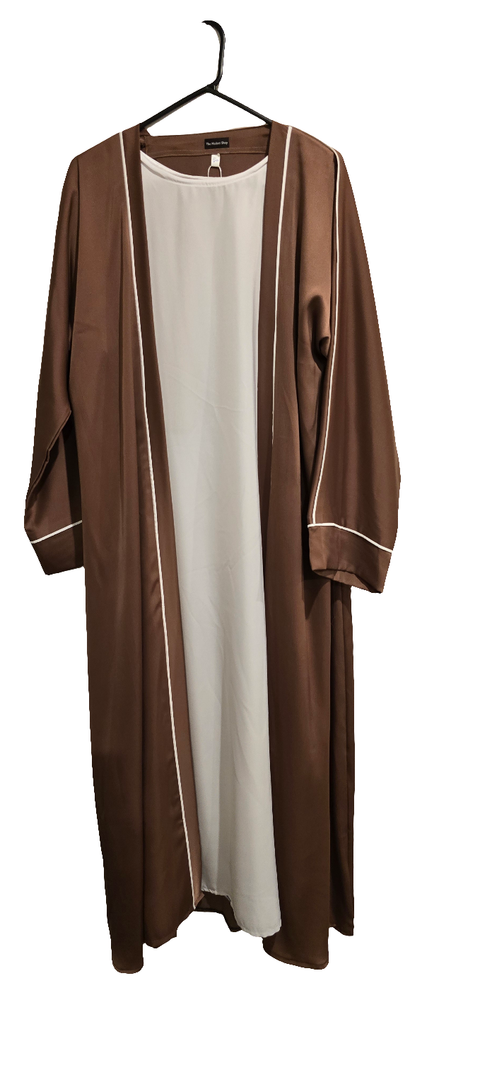 This 4-Piece Abaya Set features elegant white piping, adding a touch of sophistication to your wardrobe. Made from high-quality materials, this set is perfect for any occasion. With four pieces in one, it offers versatility and convenience. Elevate your style with this timeless and chic abaya set.