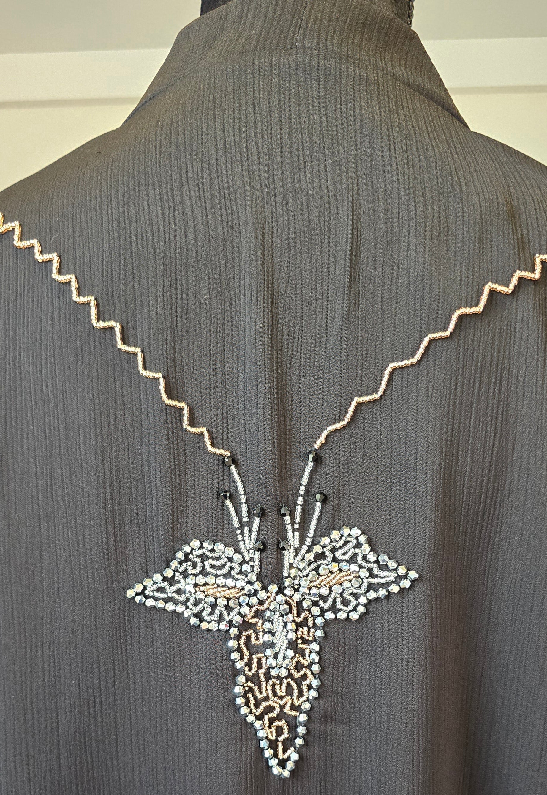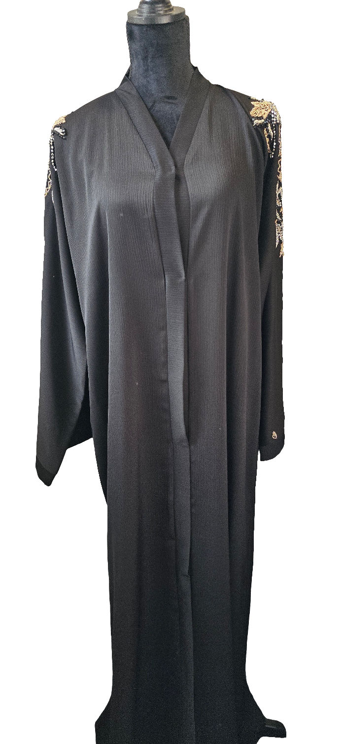 Introducing the Abaya 3-Piece Set, perfect for any special occasion. This elegant set includes a scarf, waist belt, and a beautifully gem embroidered abaya. Its thick material provides warmth and its simple yet stylish design is sure to make a statement. Be ready to turn heads with this stunning set.