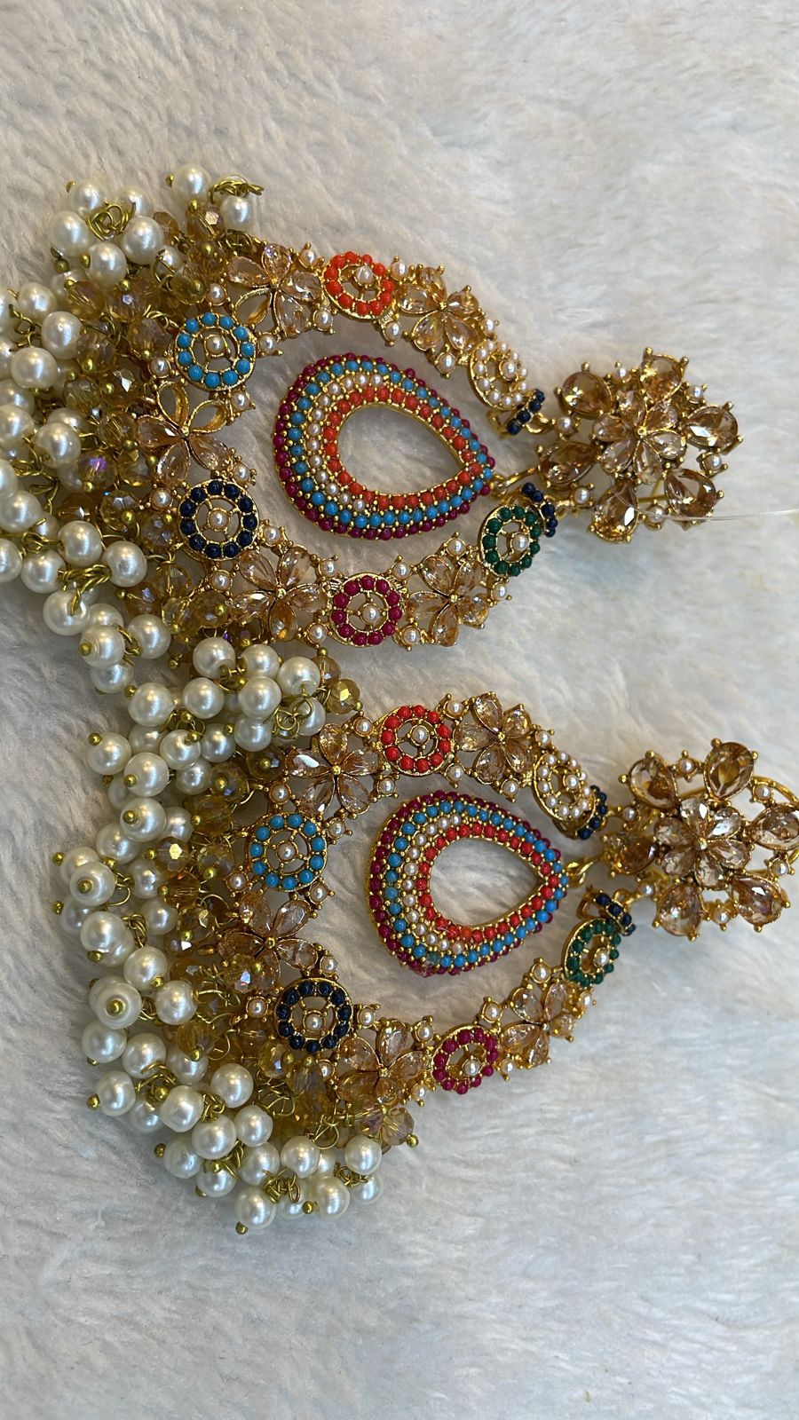 Beautifully crafted Earrings with stones and pearls in multi colours