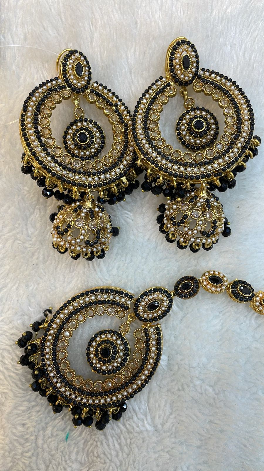 This stunning Earrings and Bindiya Set is expertly crafted with stones and pearls, creating a truly unique and beautiful accessory. Add a touch of elegance and glamour to any outfit with this set, perfect for any occasion. Upgrade your jewelry collection with this must-have set.
