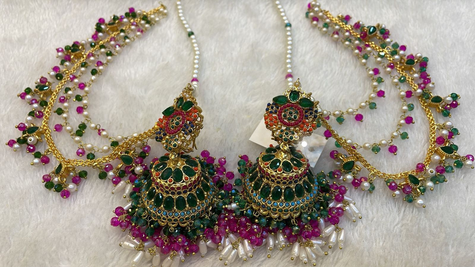 Expertly crafted, this Multicolour Jhumka with Sahara adds a vibrant touch to any traditional outfit. With its unique design and multiple colors, it is sure to turn heads and make a statement. Handmade by skilled artisans, this Jhumka is a true testament to the beauty of Indian craftsmanship. Elevate your style with this beautiful piece and showcase your love for traditional jewelry.